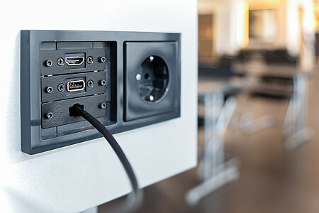 Kernkomponenten der neuen Medientechnik im Besprechungsraum:
