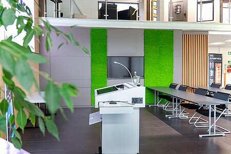 „Die verbaute Medientechnik ist sehr wertig und fügt sich perfekt in das Gesamtgefüge der Ausstel-lungsfläche ein. Besonders überzeugt hat uns die benutzerfreundliche und klar strukturierte Bedie-nung – insgesamt ein rundum gelungenes Ergeb-nis. Auch die Zusammenarbeit verlief von der Planung bis zur Fertigstellung absolut reibungslos. Das Feedback aus dem Team ist durchweg positiv, vor allem externe Dozenten zeigen sich regelmäßig sehr beeindruckt von der neuen Medientechnik und der modernisierten Umgebung.“