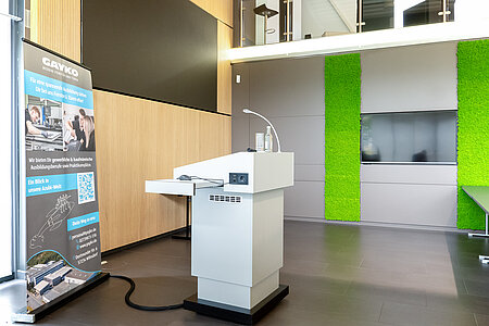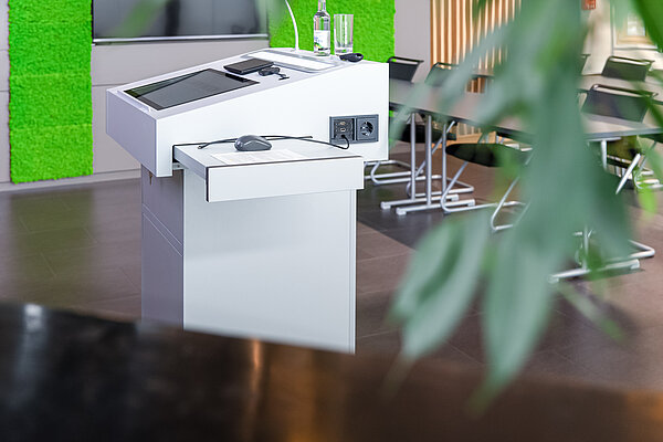 - Rednerpult der Jahn Holzmanufaktur – mit integriertem Shure MXA710 Mikrofon